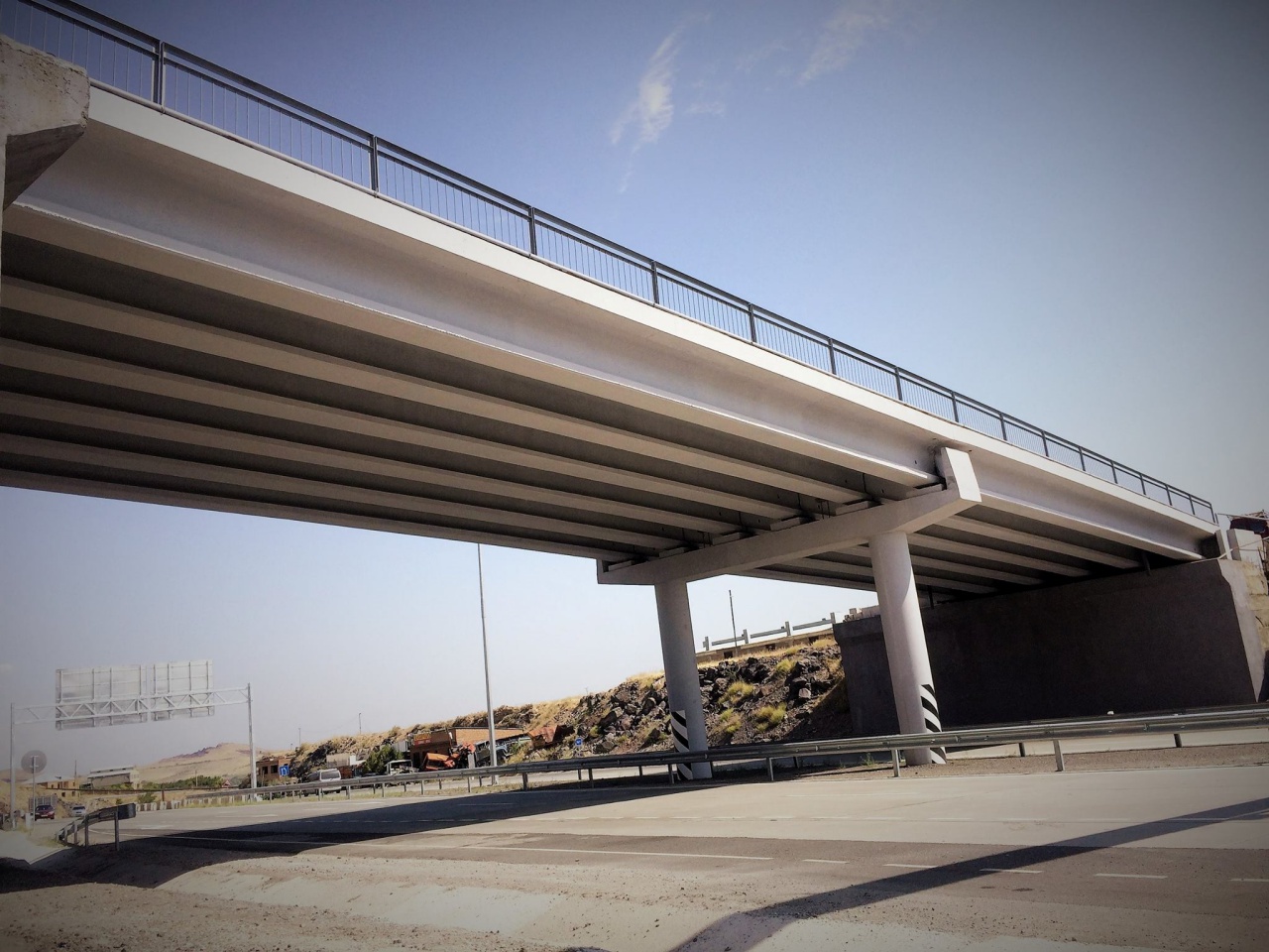 Viaduct and overpass on the new highway connecting streets Avetisyan, Saralanji and Heratsi in Yerevan In 2008 the viaduct was put into operation. Length - 59,35m Longitudinal scheme - 2x28m Width - 13m (0,5+12,0+0,5).