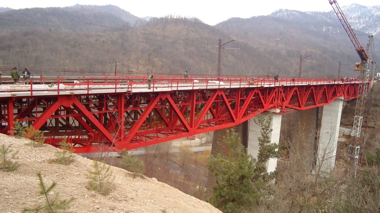 In the 1985 double-track railway bridge was put into operation. Length of the bridge-182m, longitudinal scheme-3x45+33.6 m, with metallic spans.Height of the piers -up to 40m. Prescat concrete - 970m3 Monolithic concrete - 6400m3 Metallic construction - 650tn