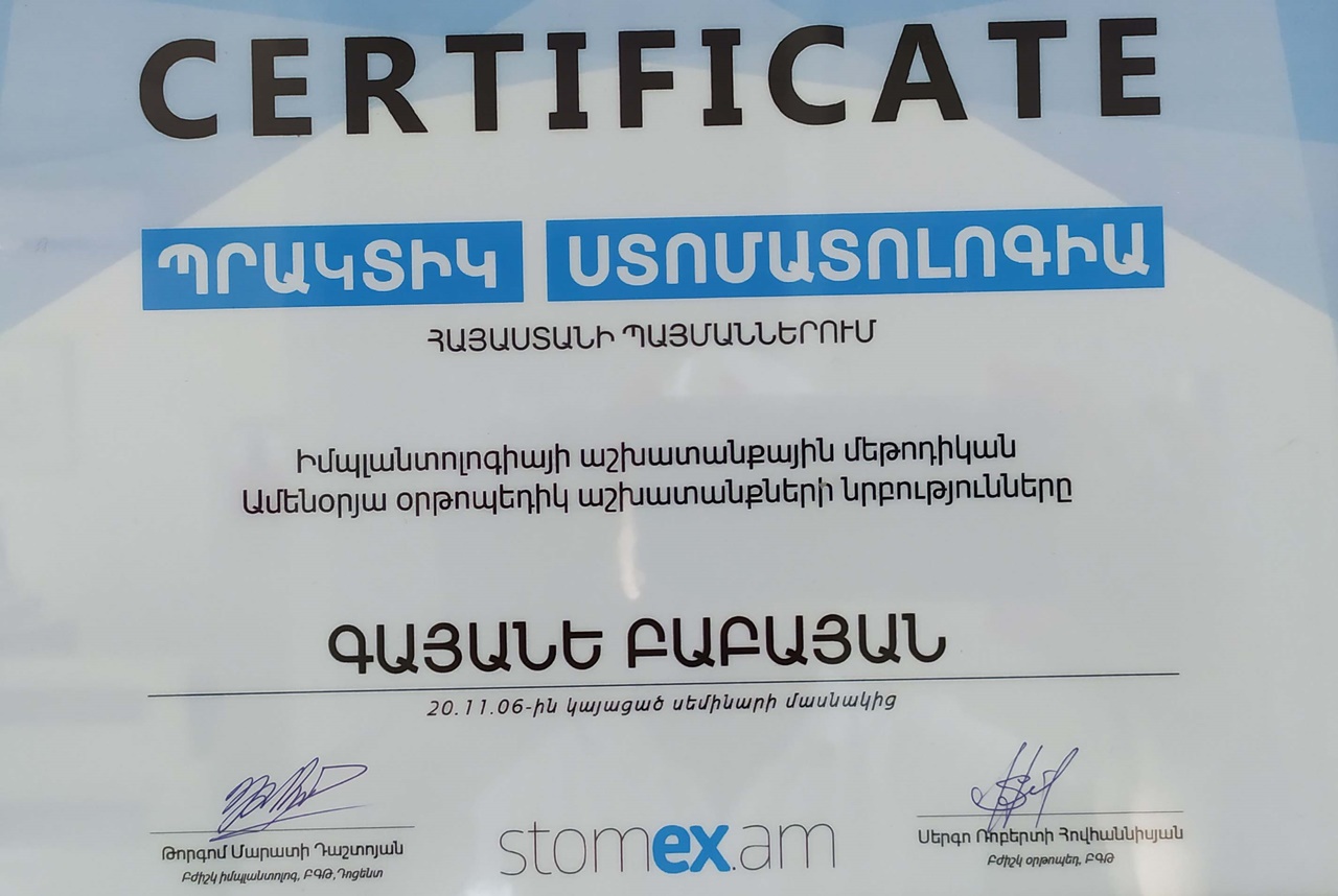 One of the other advantages is that specialists of this center often take part in various trainings both in Armenia and abroad. Another advantage is that the clinic also has a laboratory for the manufacture of prostheses and other parts necessary for treatment. The clinic provides its patients with transport – private vehicles to and from the clinic.