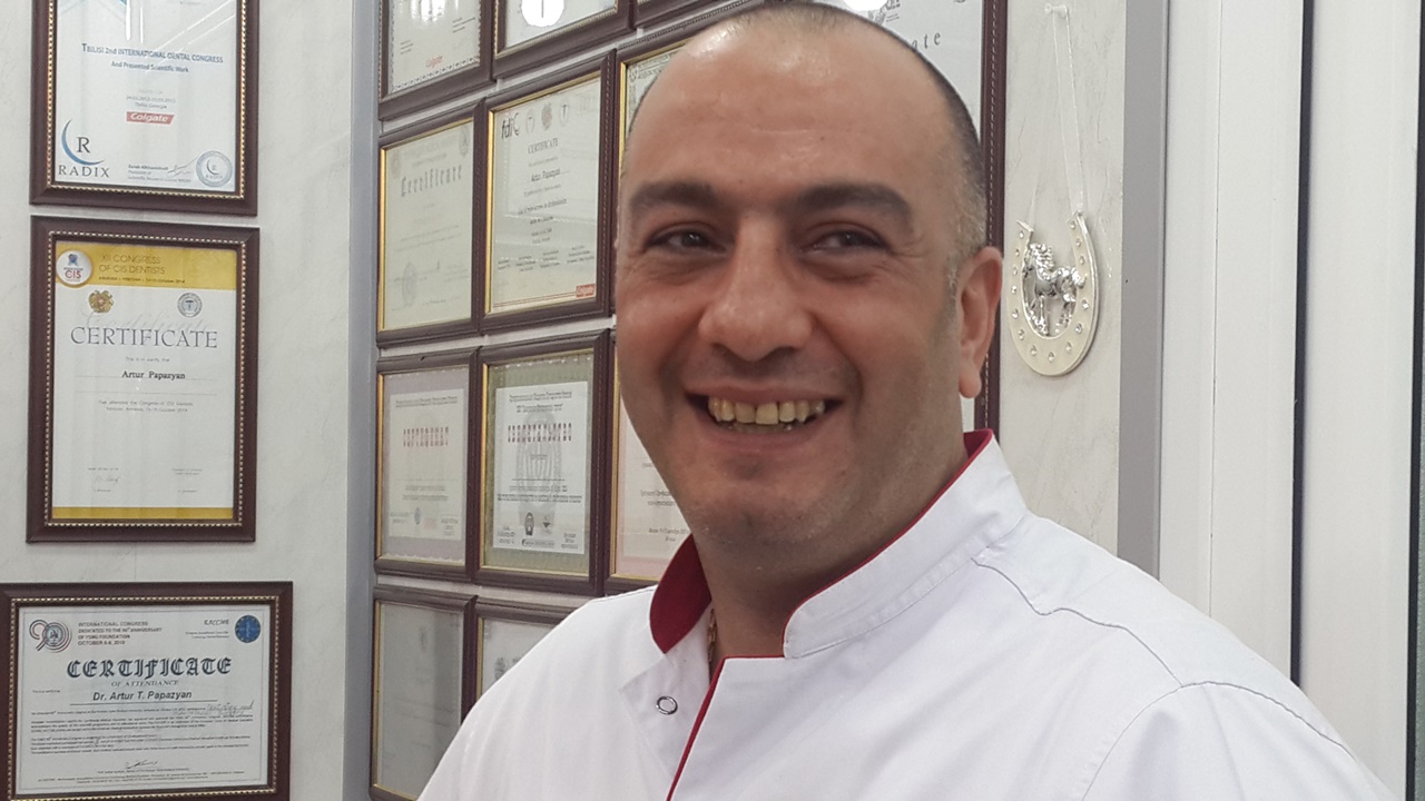 Dr. Arthur T. Papazyan - PhD, DMD, Dentist, Founder and Director of SONATO Dental Clinic, Chief Orthodontist of the Ministry of Healthcare of the Republic of Armenia, Dean of the Faculty of General Medicine of the Yerevan State Medical University after Mkhitar Heratsi, Professor of the Chair of Maxillofacial Surgery and Surgical Stomatology at the same university.
