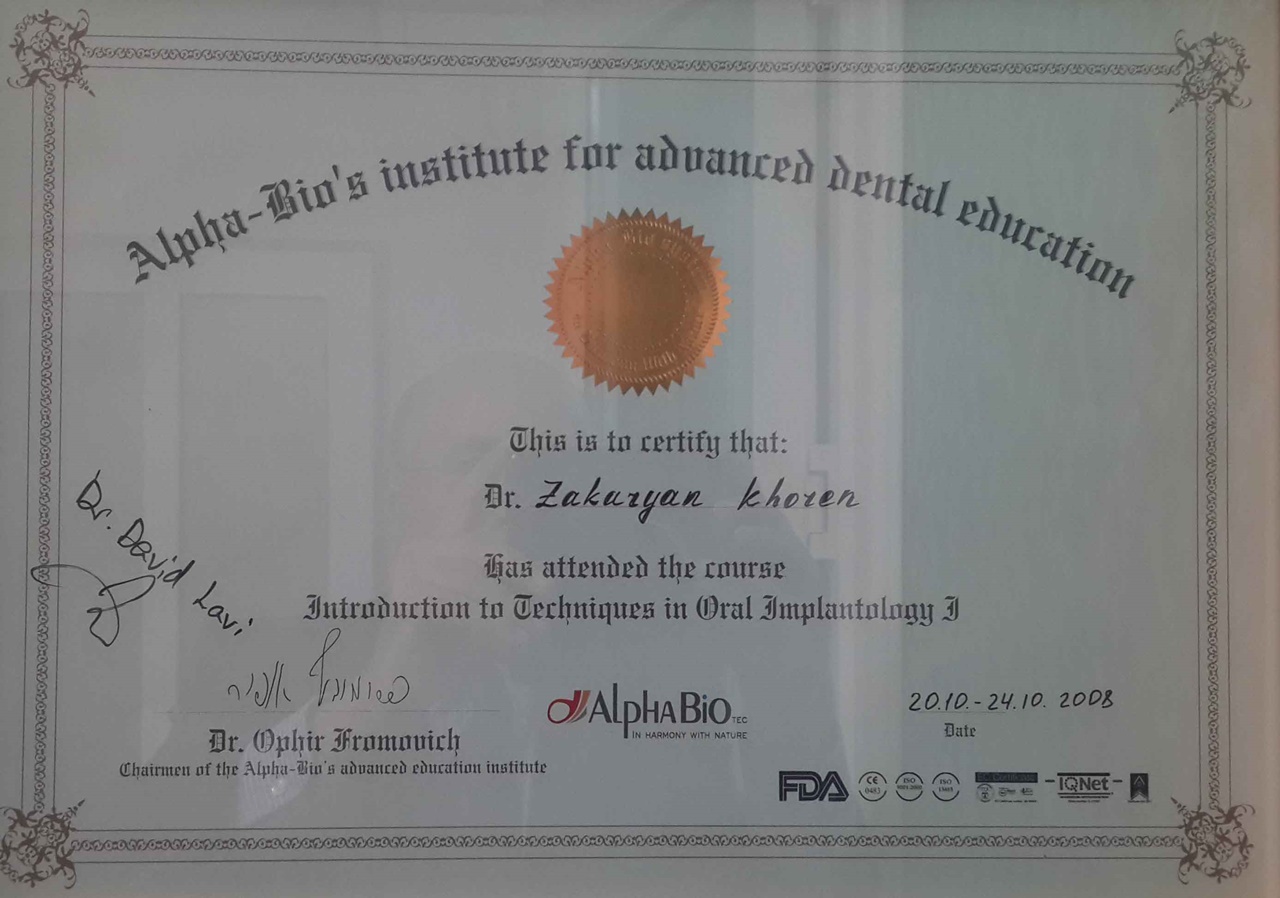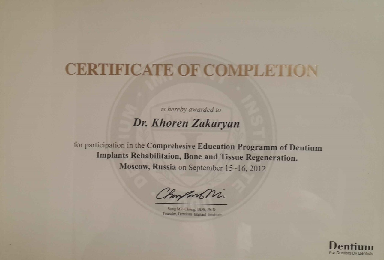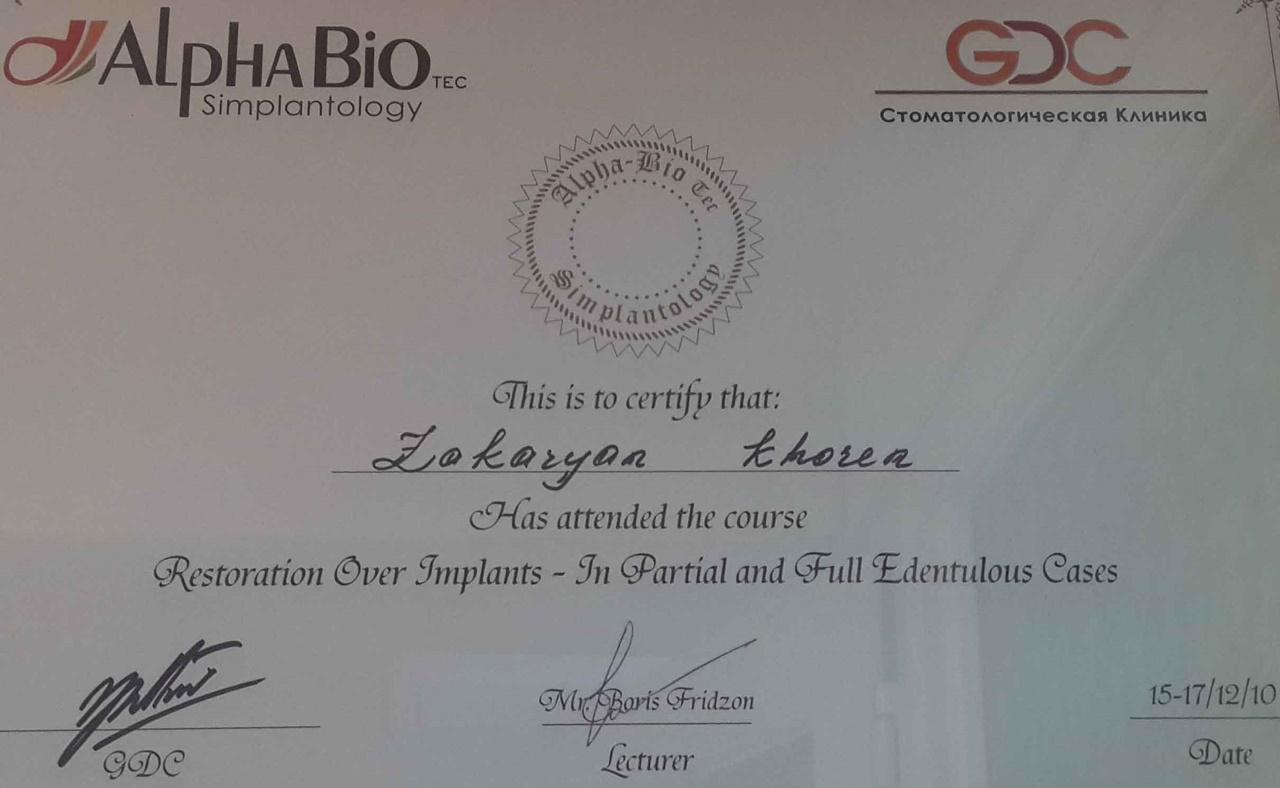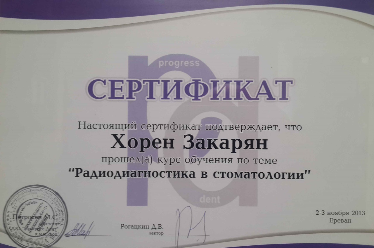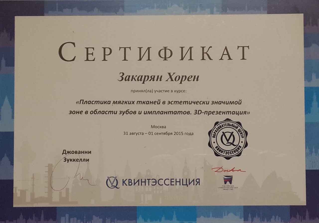 Dr. Khoren Ruslan Zakaryan graduated from the Department of Dentistry of the Yerevan State Medical University after Mkhitar Heratsi, in 1988, and the Clinical Residency at the same Department, in 1989. Further education and major training includes: