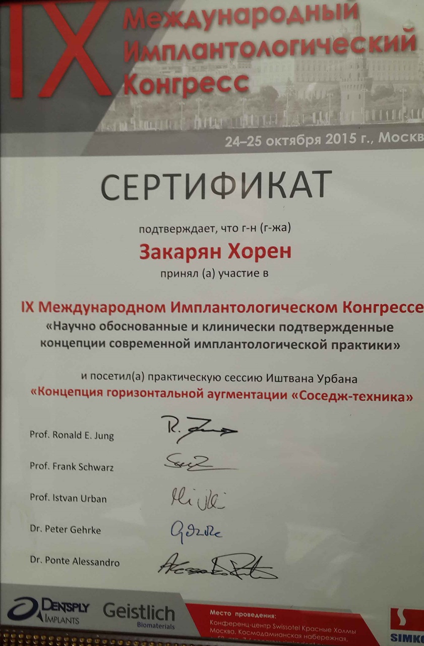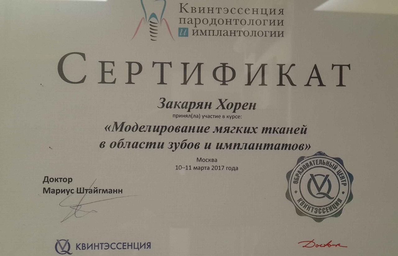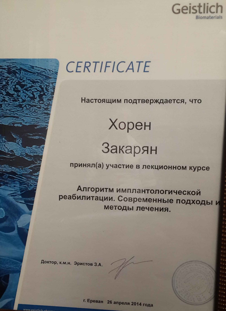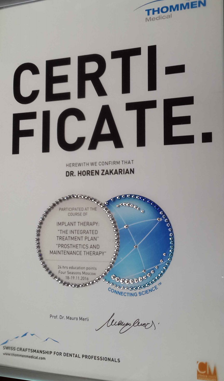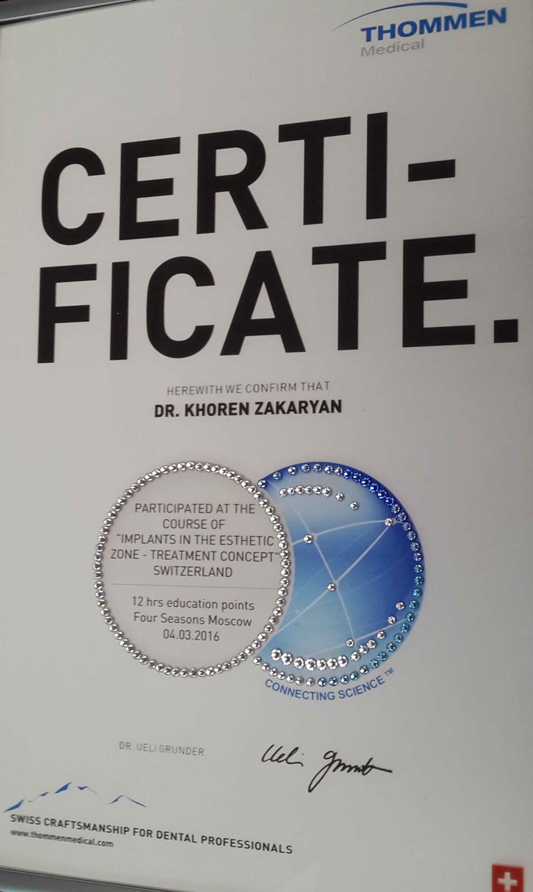 Dr. Khoren Ruslan Zakaryan graduated from the Department of Dentistry of the Yerevan State Medical University after Mkhitar Heratsi, in 1988, and the Clinical Residency at the same Department, in 1989. Further education and major training includes: