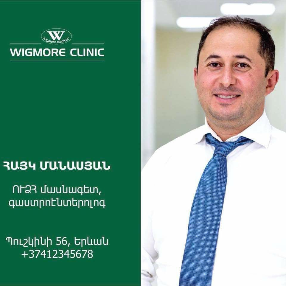 Dr. Hayk A. Manasyan - Gastroenterologist and Ultrasound Examination Specialist at WIGMORE CLINIC, Yerevan, Armenia.