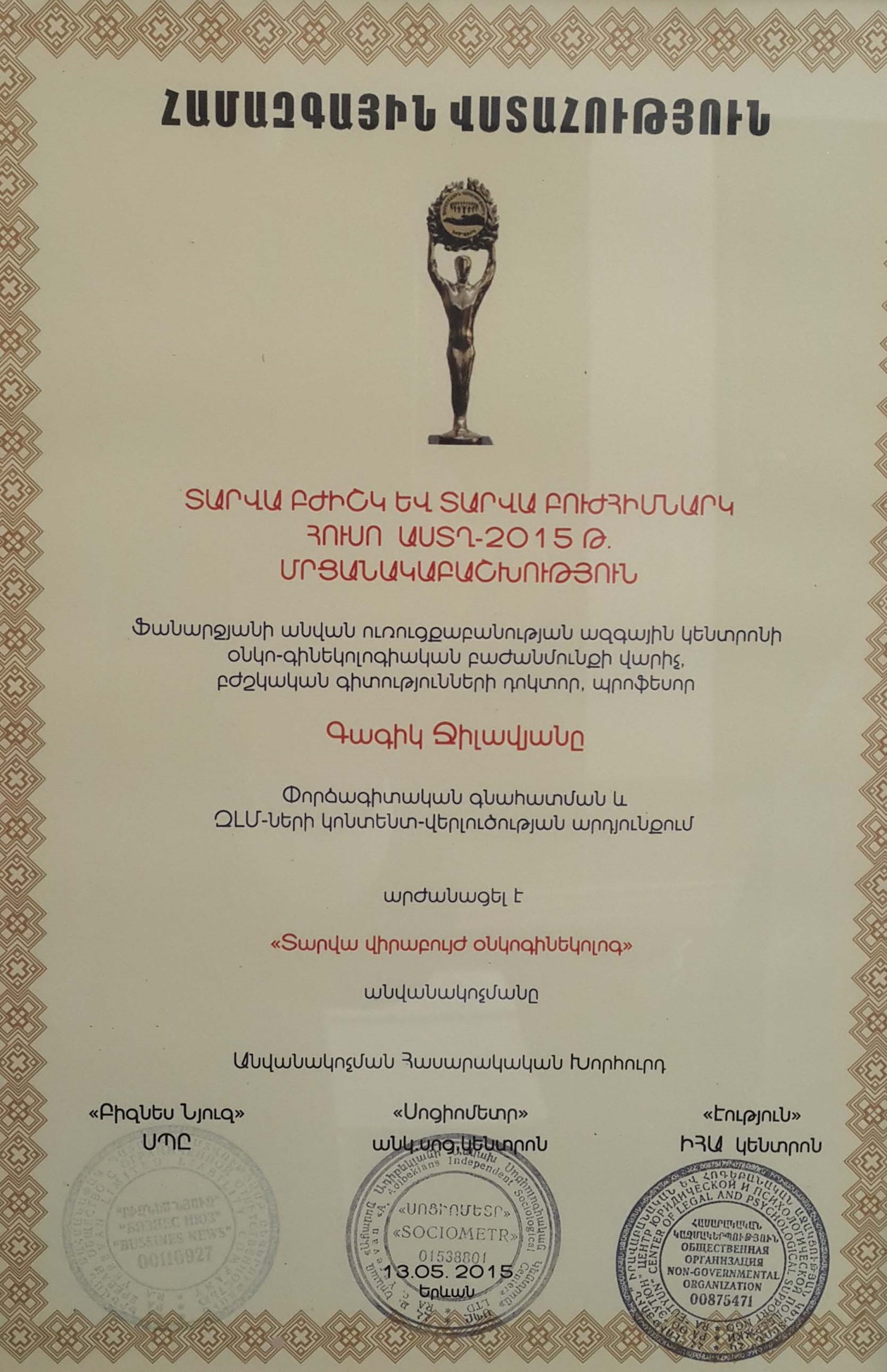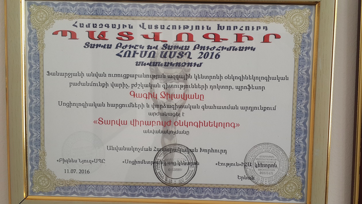 Dr. Gagik A. Jilavyan has more than 80 scientific publications and several suggestions on optimization of surgical treatment of patients with cancer. Also, he is largely involved in preventive maintenance and optimization of methods of treatment of a cancer of the cervix of the uterus, the cancer of a body of a uterus, a cancer ovaries, a cancer of a vulva and trophoblastical illnesses.