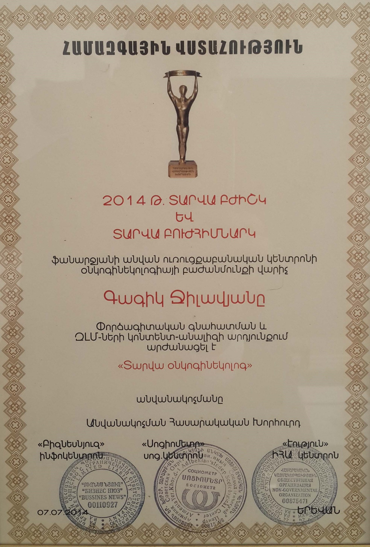 Dr. Gagik Aram Jilavyan - Gynecologic oncologist, M.D., Ph.D., Professor, Academician of RANS, Chief of Gynecological Oncology Department of the National Center of Oncology After V.A.Fanarjyan