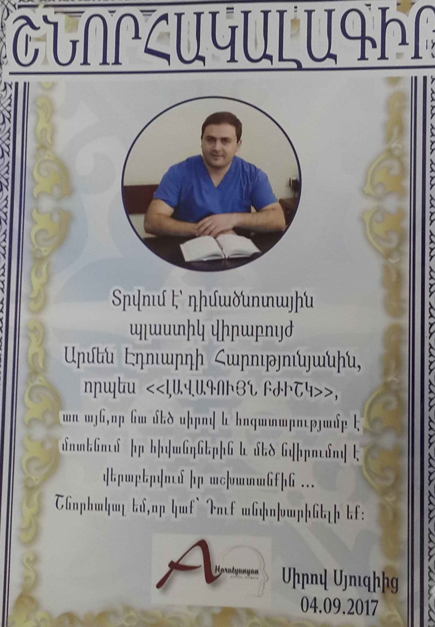 Dr. Armen Eduard Harutyunyan – Maxillofacial and Plastic Surgeon at ASTGHIK MEDICAL CENTER